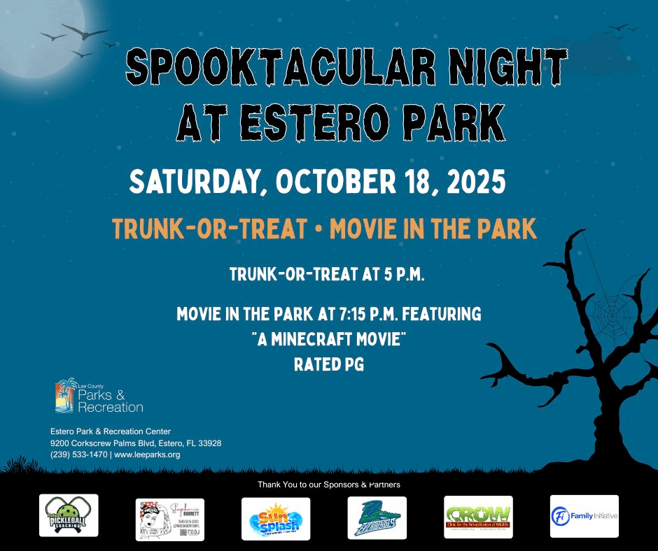 A night of family friendly and spooktacular fun. Activities include a trunk-or-treat and a donation drive benefiting the Clinic for the Rehabilitation of Wildlife (CROW). Stay for a Movie in the Park, featuring “The Minecraft Movie” rated PG. The movie starts at 7:15 p.m.