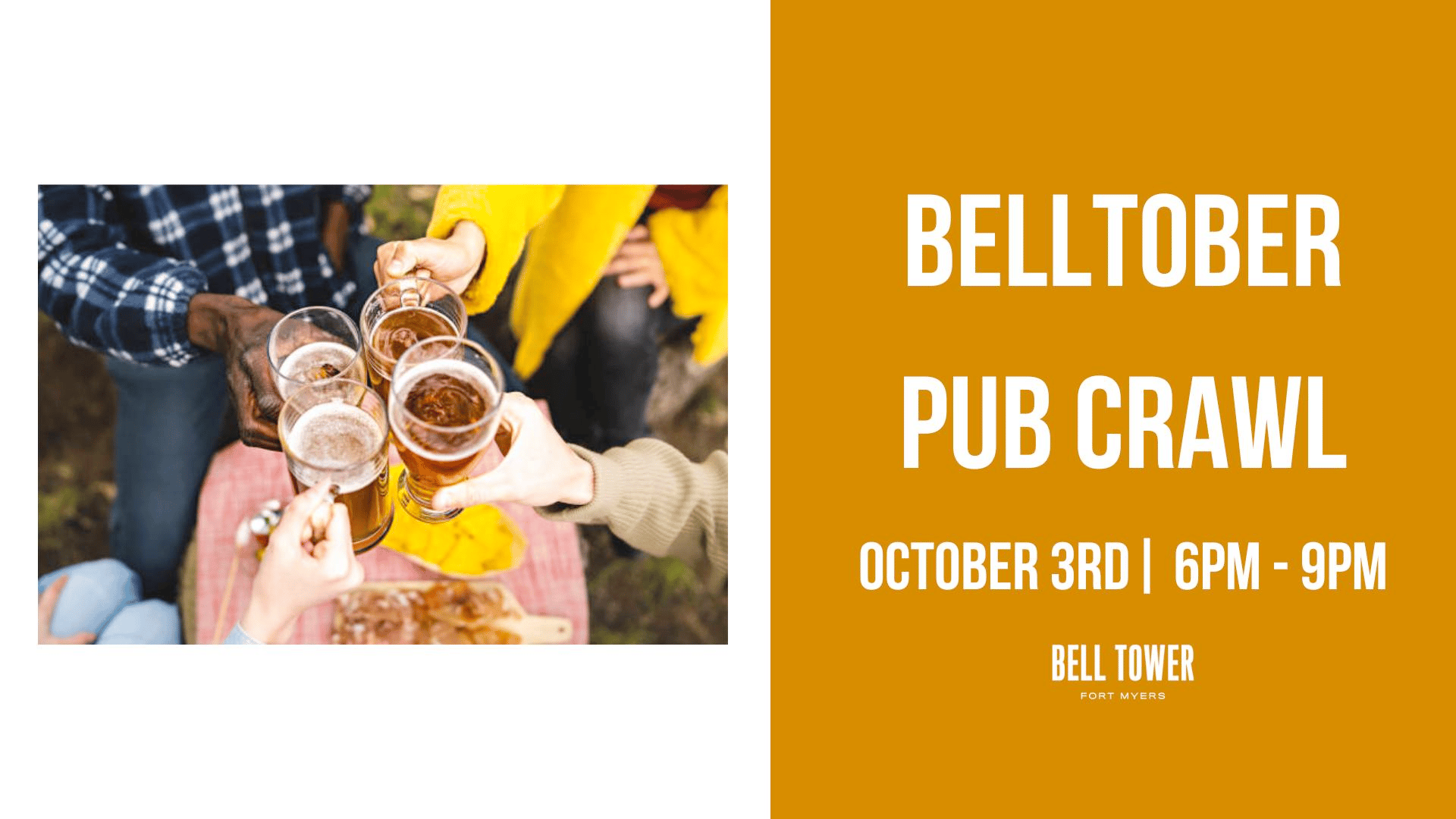 Join us for the Belltober Pub Crawl, a ticketed Oktoberfest-inspired evening at Bell Tower! Your $30 registration includes a progressive tasting experience(1 drink & 1 appetizer) from the six participating restaurants plus a night of entertainment in Center Court.